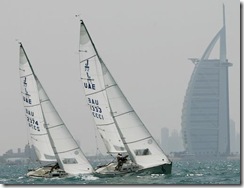 Wat een foto! De J22 UAE 1333 voor het Burj Al Arab matchracend en in de lead!