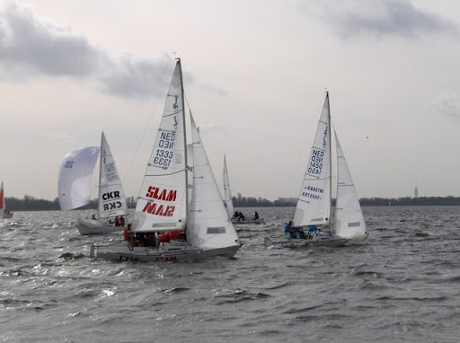 De start was gelijk terwijl wij naar rechts gingen kwam de wind op links eerder waardoor we bij de bovenboei al 100 meter hadden verloren.